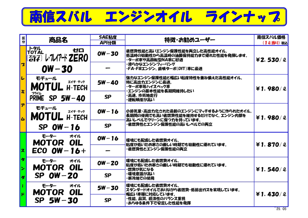 エンジンオイルラインナップ